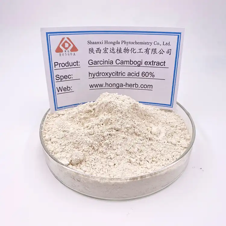 You need high-quality Garcinia Cambogia extract powder to make sure your top weight loss solution works as well as possible. Our standardized Garcinia Cambogia extract always has 60% to 70% hydroxycitric acid (HCA). Shaanxi Hongda uses the best growing places in Southeast Asia to get natural Garcinia Cambogia. They use a "multi-stage membrane filtration + low-temperature vacuum concentration" process. The main idea behind HCA is to stop ATP-citrate lyase from working before fat synthesis, which stops carbohydrates from turning into fat. At the same time, it raises serotonin levels in the brain to make you feel full naturally, which helps you lose weight.