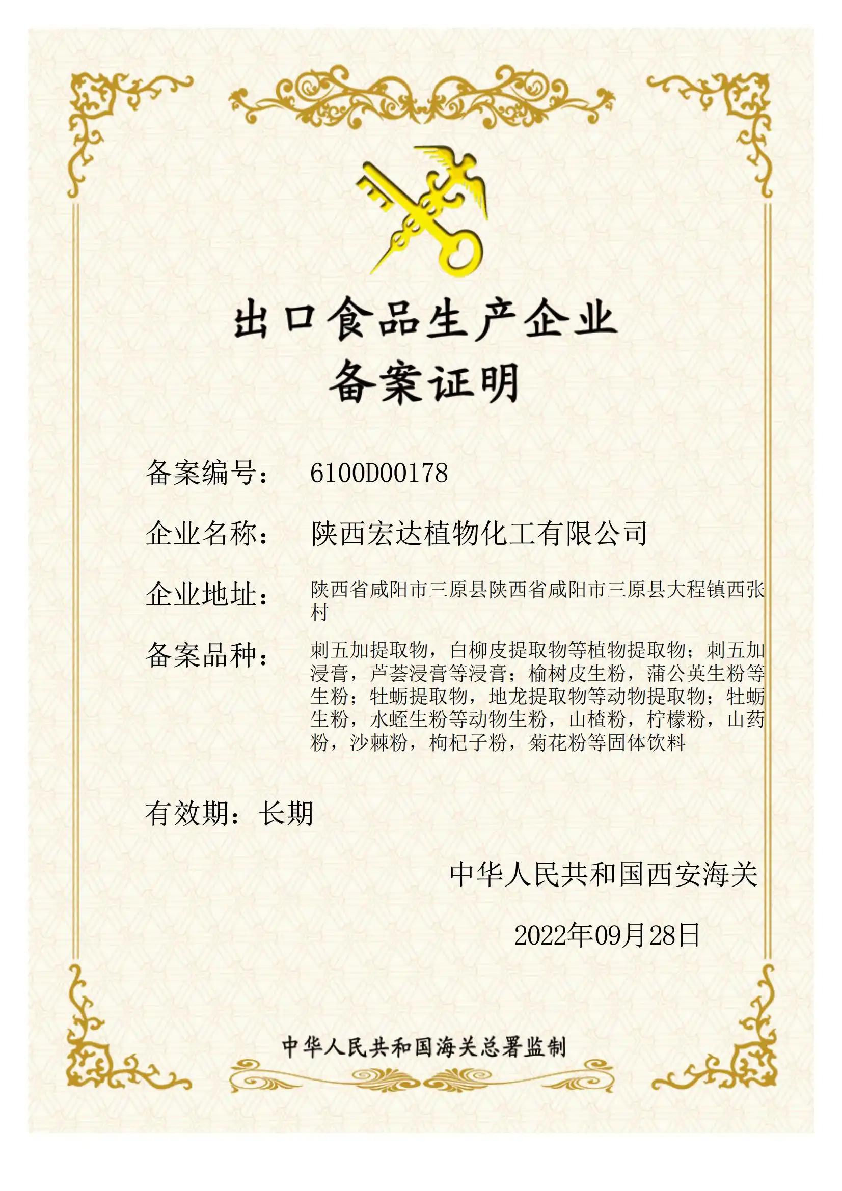 Export Food Enterprise Registration Certificate