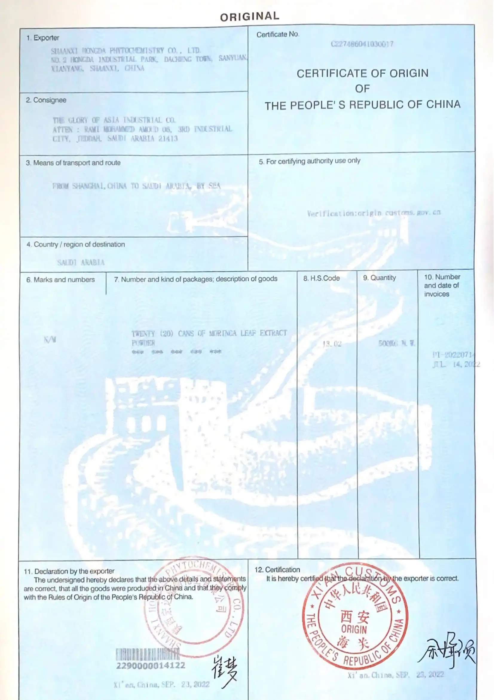 Shaanxi Hongda Company has always adhered to the concept of "natural, green, healthy, and serving customers". The company continues to innovate and develop our products, strictly control quality, cooperate with many international authoritative testing agencies, and has obtained a number of qualifications and certifications, which can fully guarantee product quality.